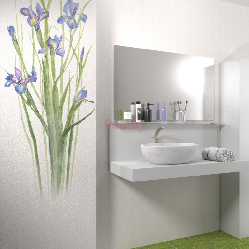Панель ПВХ (пластиковая) ламинированная Век Панно из 3 шт. Букет ирисов (Белый бархат) 2700*250*9 - РАСПРОДАЖА